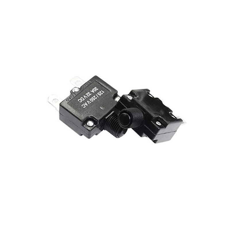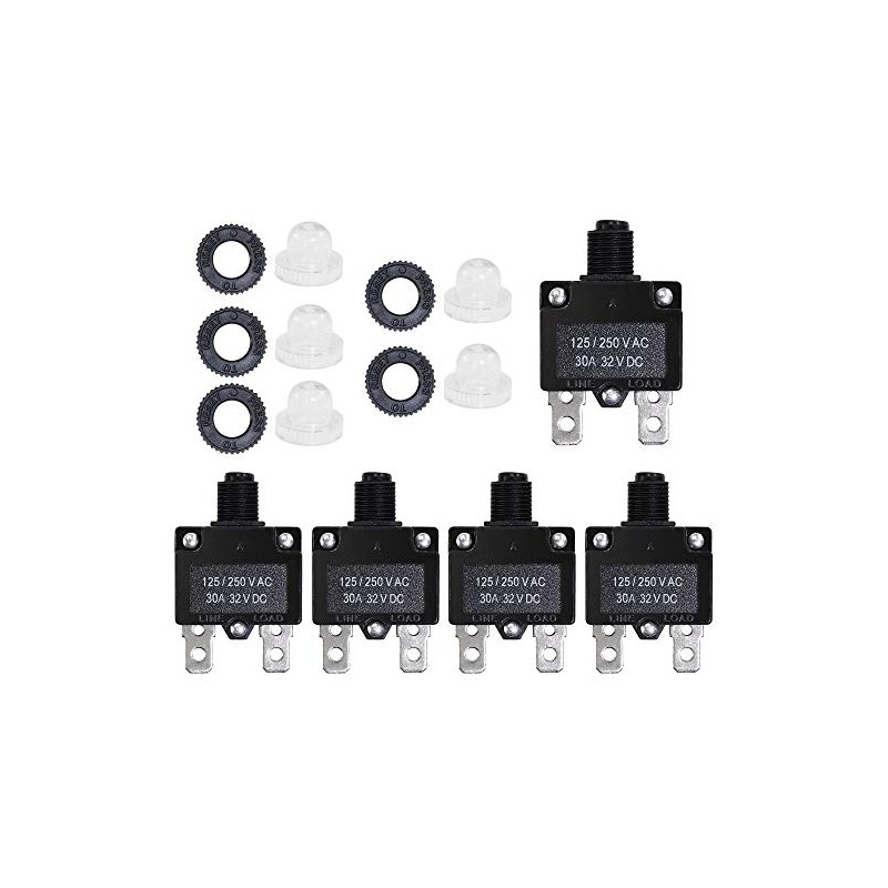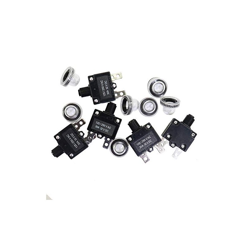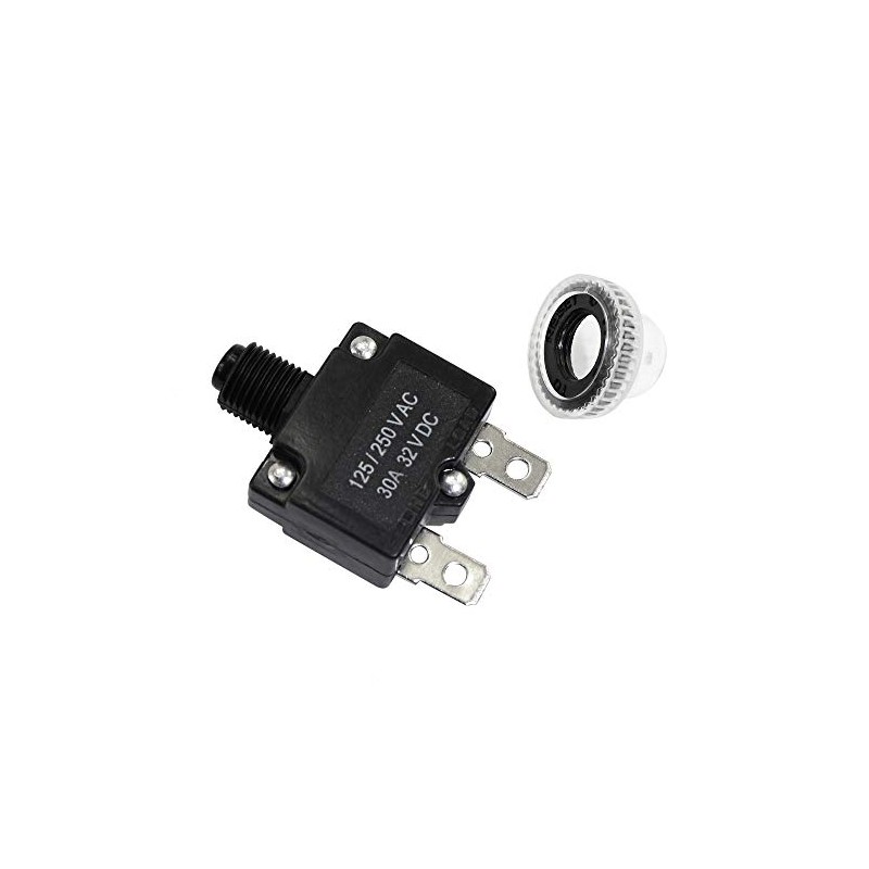 Power rating: 30A (amp). Compact design enables high density circuit protection configurations. Push-to-reset operation with black manual reset button.this circuit breaker with a waterproof button cap to protect from bad weather. The mounts in 3/8 inch(10m m) round hole.This is fit for one push button circuit breaker for operation up to 32 volts DC or 250 volts AC. It widely suitable For Automotive/Industrial/Marine And Many Other applications. Product Description:Color:BlackWith waterproof button transparent cap.It mounts in 3/8 inch (10 mm) round hole.This replacement circuit reset circuit breaker can be used in a variety of applications requiring up to 30 amp protection.With a plastic case and the included waterproof button cap you can use this circuit breaker where it may be exposed to moisture without worry.Package Include:5x 30Amp Circuit Breaker5x waterproof button cap