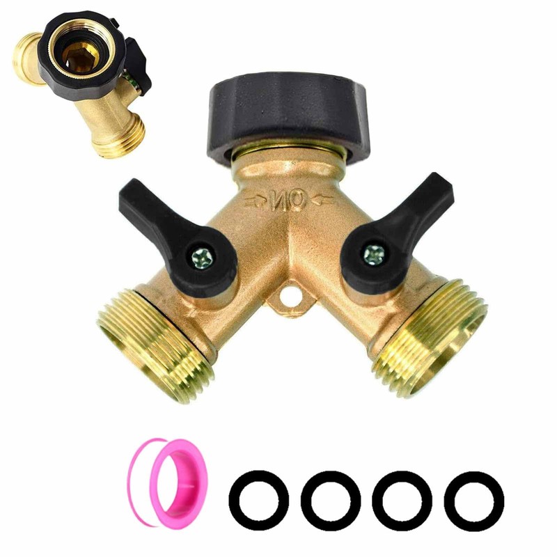 FUZVOL Brass Tap Y Splitter Brass Manifold Two Way Washing Machine Hose Connector 3/4", 2-Way Garden Hose Diverter Washing Machine Y Piece for Standard Faucet Outdoor Tool Fitting