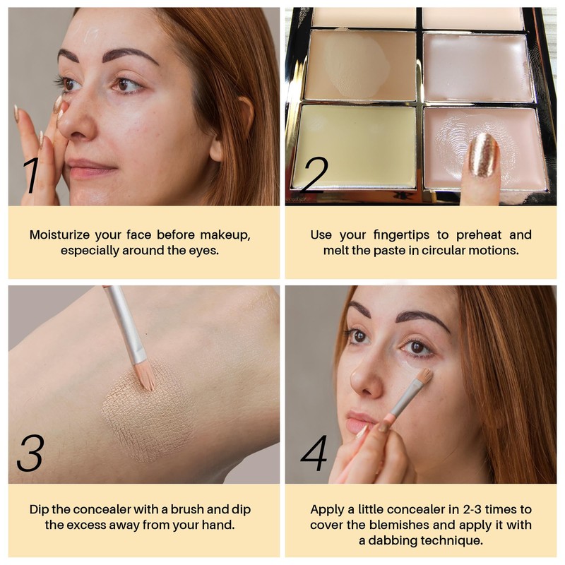• Suitable for any skin: whether you have oily or dry skin, our cream concealer palette adapts to your needs. The lightweight, creamy formula blends effortlessly and leaves a wrinkle-free complexion.
