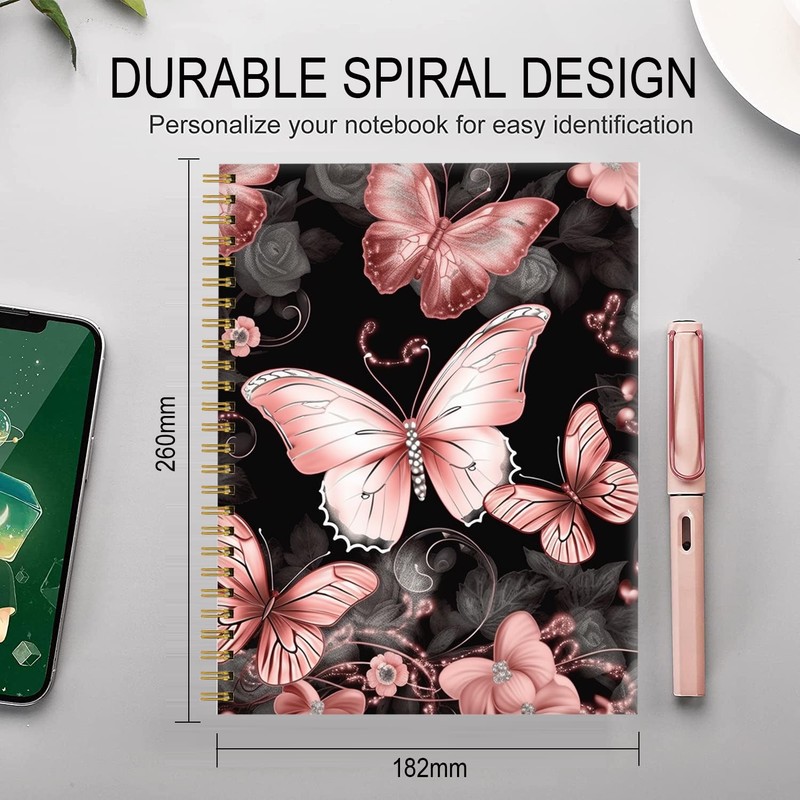 FVBAO Spiral Journal Notebook for Women,Cute A5 College Ruled Notebooks 6"x 8.4", 120 Pages Lined Journal with Premium Thick Paper,Perfect for School Office Home Gifts(Rose Gold Butterflies)