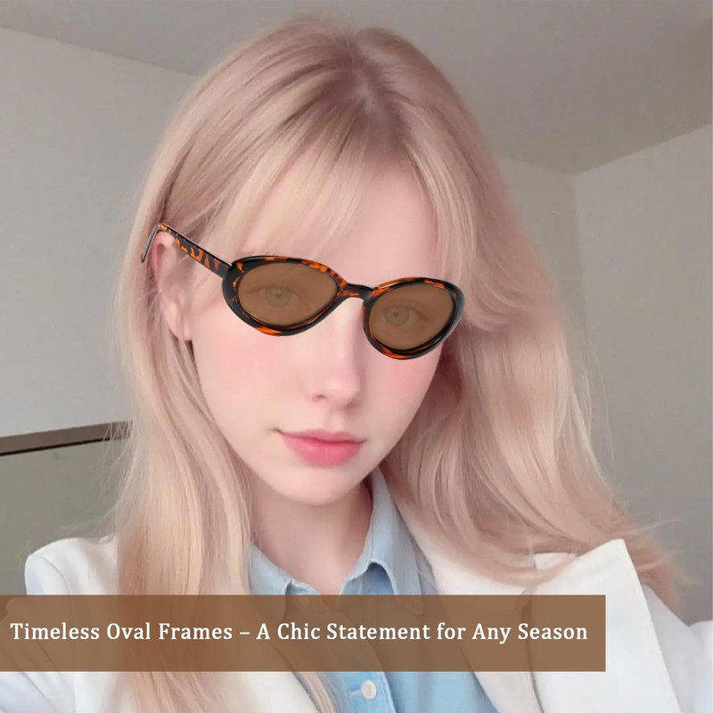 - Style & Design: Featuring a sleek sunglasses womens oval shape with a 90s-inspired twist, these retro sunglasses women deliver a bold, fashionable statement. Their retro silhouette adds a fun vintage flair to any outfit, enhancing both confidence and charm in one chic accessory.