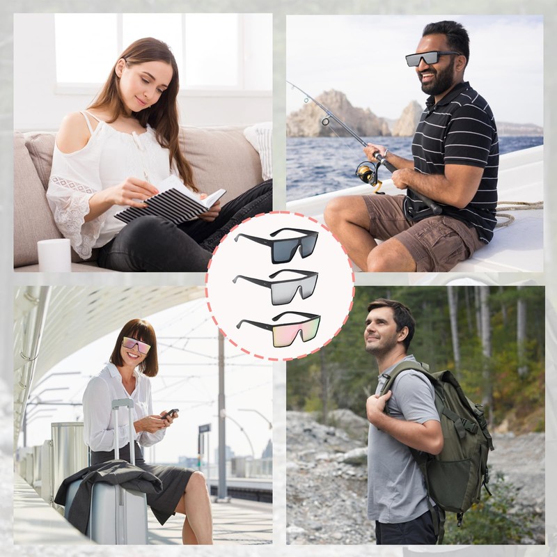 - Fashion Set: Our package includes 3PCS rave sunglasses men women( pink black white), The 3 colors of these sunglasses will match a variety of your outfits and add the finishing touch to your everyday looks.