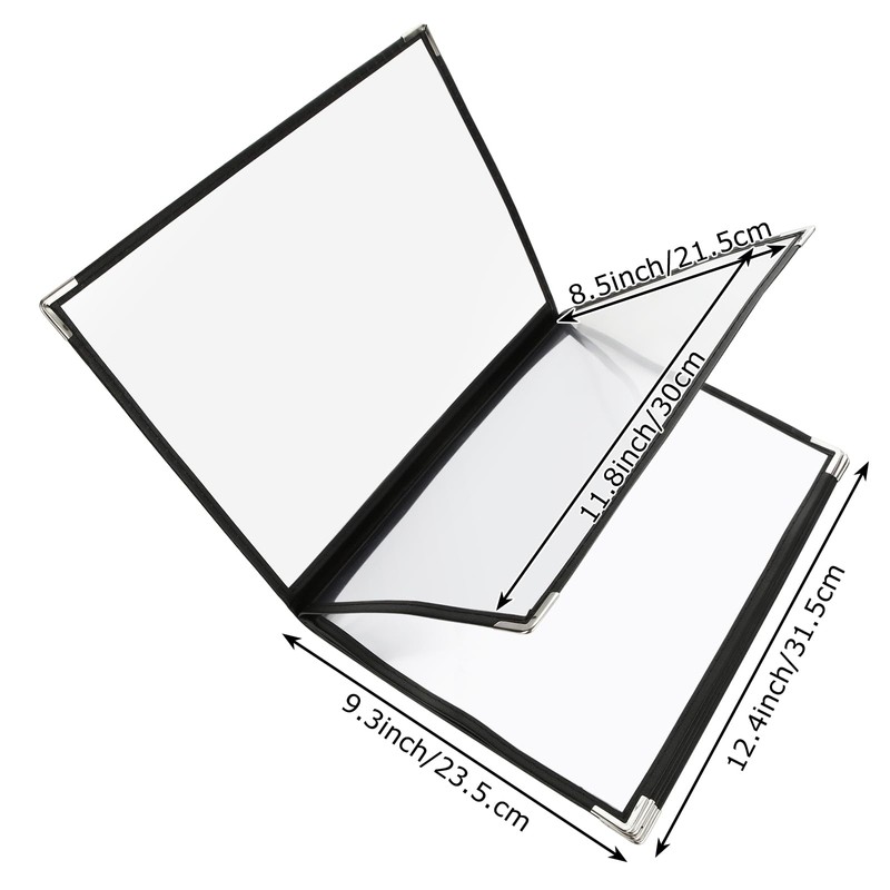 - 2 Value Pack: Package Included: 2PCS 1 Page 2 View Menu Sleeves, sufficient quantity to meet your needs. Total size: 12.4 x 9.3 Inch / 31.5 x 23.5 cm. Inner Size: 11.8 x 8.5 Inch / 30 x 21.5 cm ( Menus are NOT included)