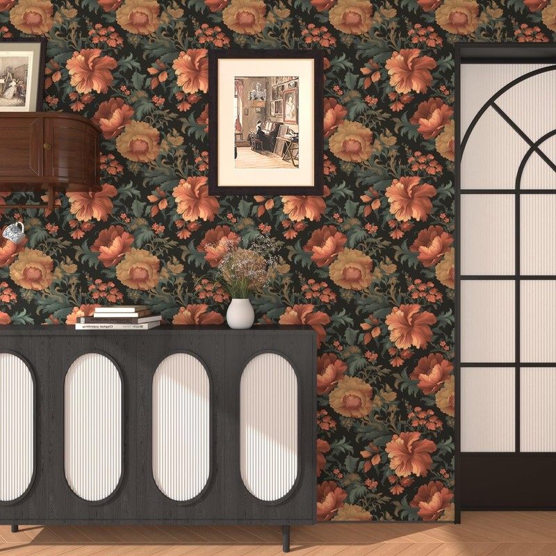 • Material and Size: The size of the flower wallpaper is 17.4" x 118". The dark floral wallpaper is made of thick and durable vinyl. The black gold wall paper has a grid on the back. Convenient for you to cut. Contact paper self-adhesive and removable, you only need to peel and stick it.