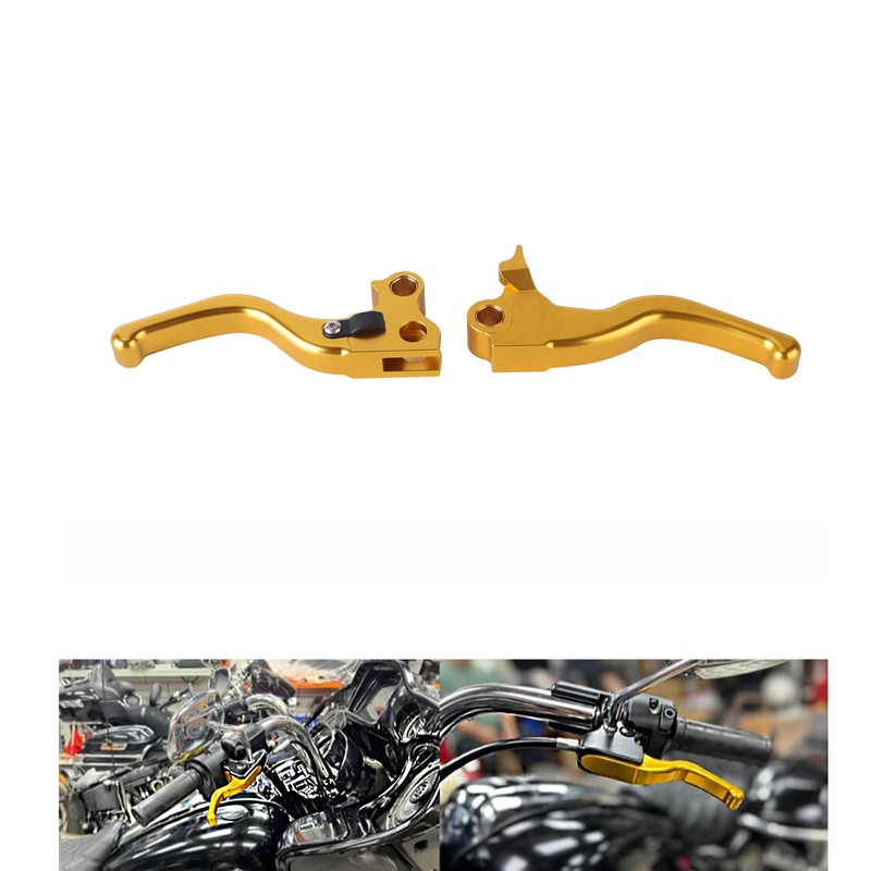 FVMOTO 3 Finger 5.9" CNC Shorty Hand Control Lever Kit Brake Clutch Levers Fit for Harley Sportster 1996-2003, Dyna 1996-2017, Softail 1996-2014, Touring 1996-2007(Gold)