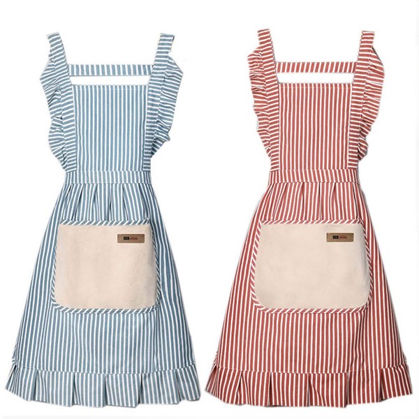 fvpxuus 2 Pack Kitchen Cooking Aprons, Adjustable Bib Soft Chef Apron with 2 Pockets for Men Women The vest does not slip on the shoulders(Blue/Red Stripes)