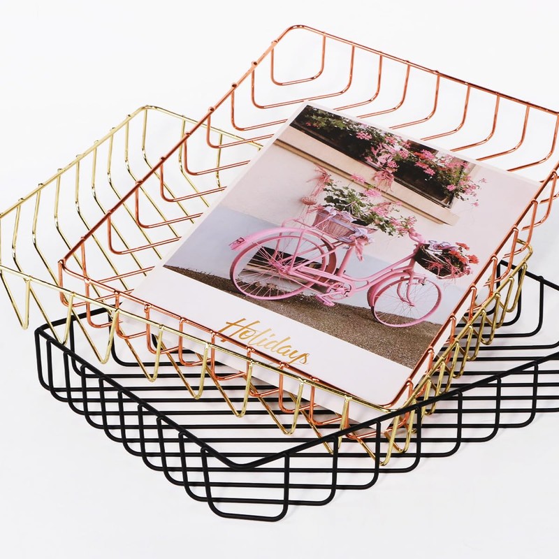 - Durable and Elegant Paper Tray Organizer :this desk paper file organizer is made of fine plated metal, sleek and well finish,gold and rose gold colors available,perfect for letter tray paper organizer