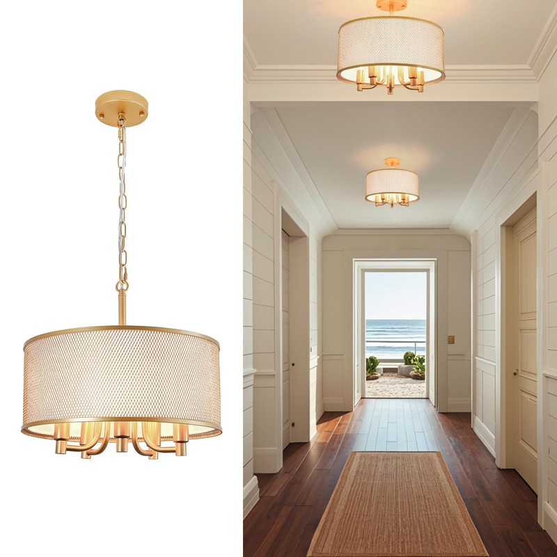 - [Dual Installation Options] Use as a dramatic drum pendant light or a low-profile semi-flush mount ceiling fixture to match your space needs.
