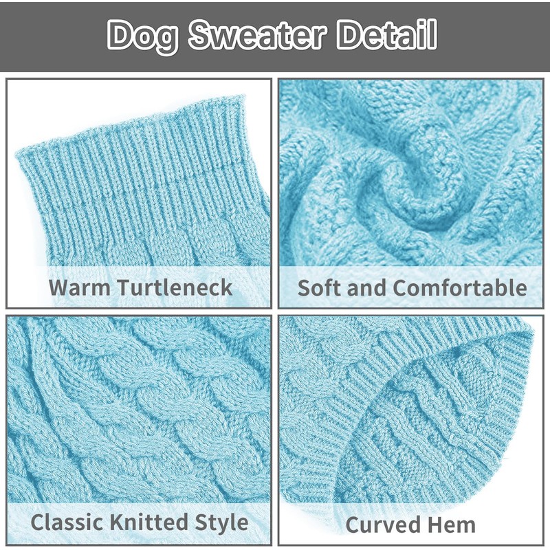 FWLWTWSS Dog Jumper Large, Turtleneck Puppy Jumper, Knitted Dog Jumpers for Small Medium Dogs and Cats, Soft Comfortable Dog Clothes for Autumn, Winter Outfit(BLUE L)