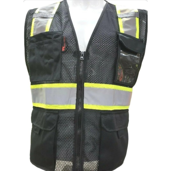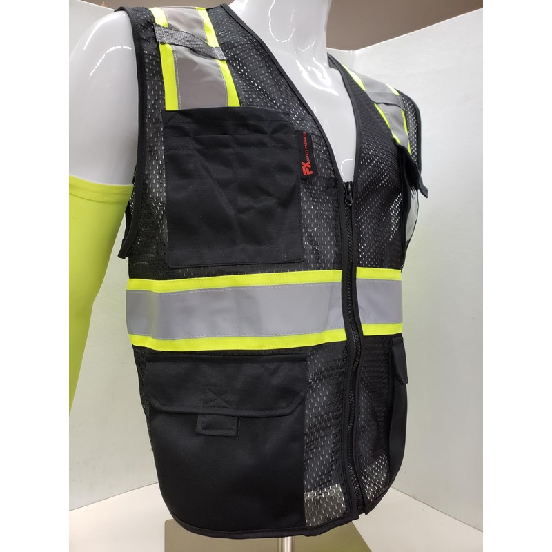 FX Safety Black Series Class 2 High Visibility Safety Vest | Meets ANSI/ISEA Standards (Black, XL)