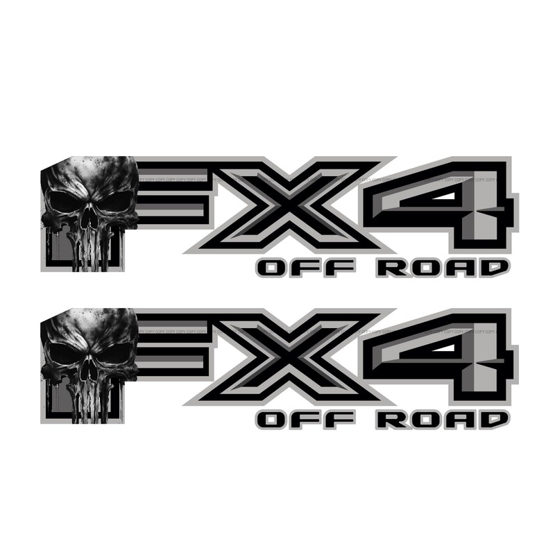 FX4 Off Road Skull Decal Replacement Sticker Bedside/Gray