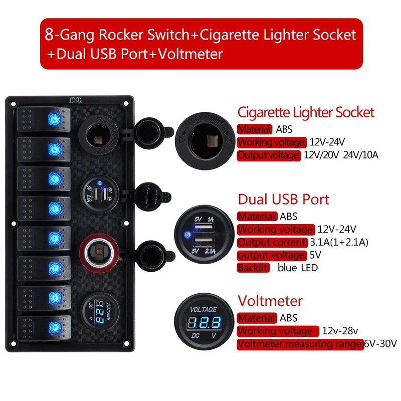 - Cigarette Lighter Socket & Dual USB Ports Battary Voltmeter Digital Monitor,Working Voltage DC12V/24V,Output:DC 5V 4.2A.