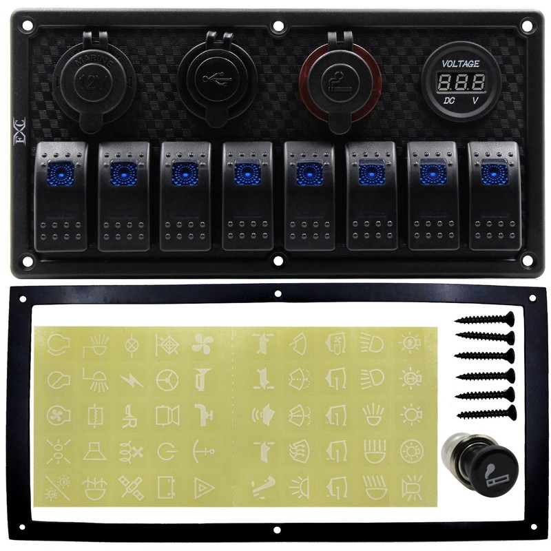 Purishion 8 Gang Rocker Switch Panel with Dual USB & Power Socket 12V-24V for Car Marine Boat Trailer (S8230)?-