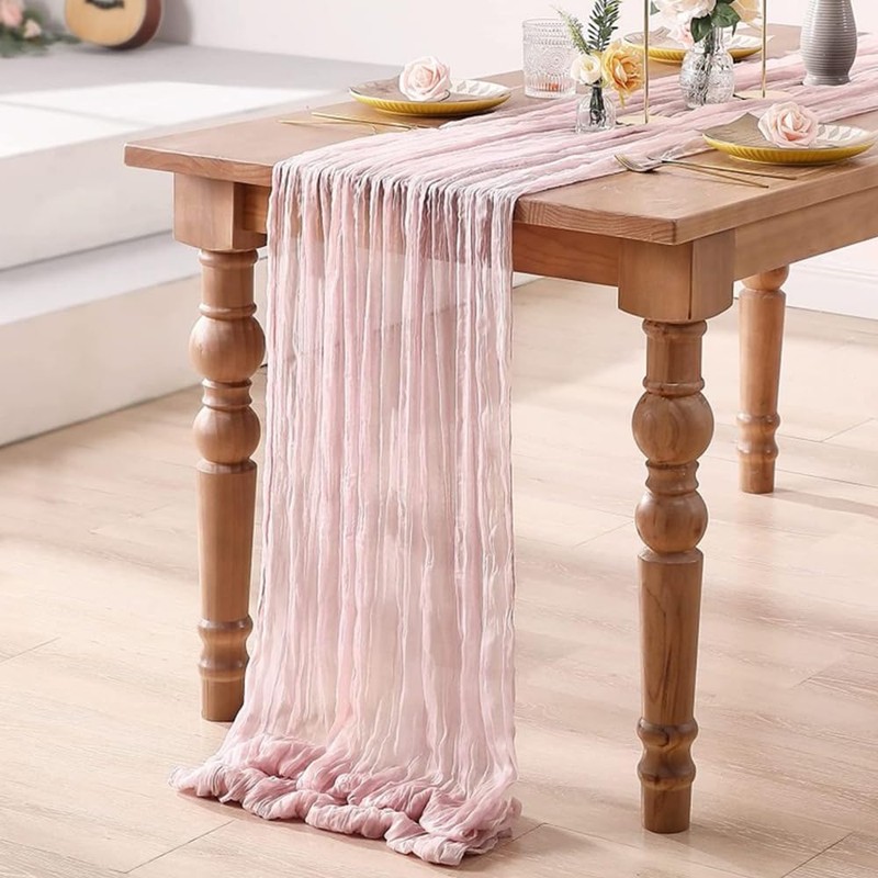 Fxkoolr Cheesecloth Table Runner 35x120 Inches Gauze Boho Rustic Cheese Cloth Table Runner for Baby Shower Decoration Wedding Easter Summer Table Runner, Dusty Pink