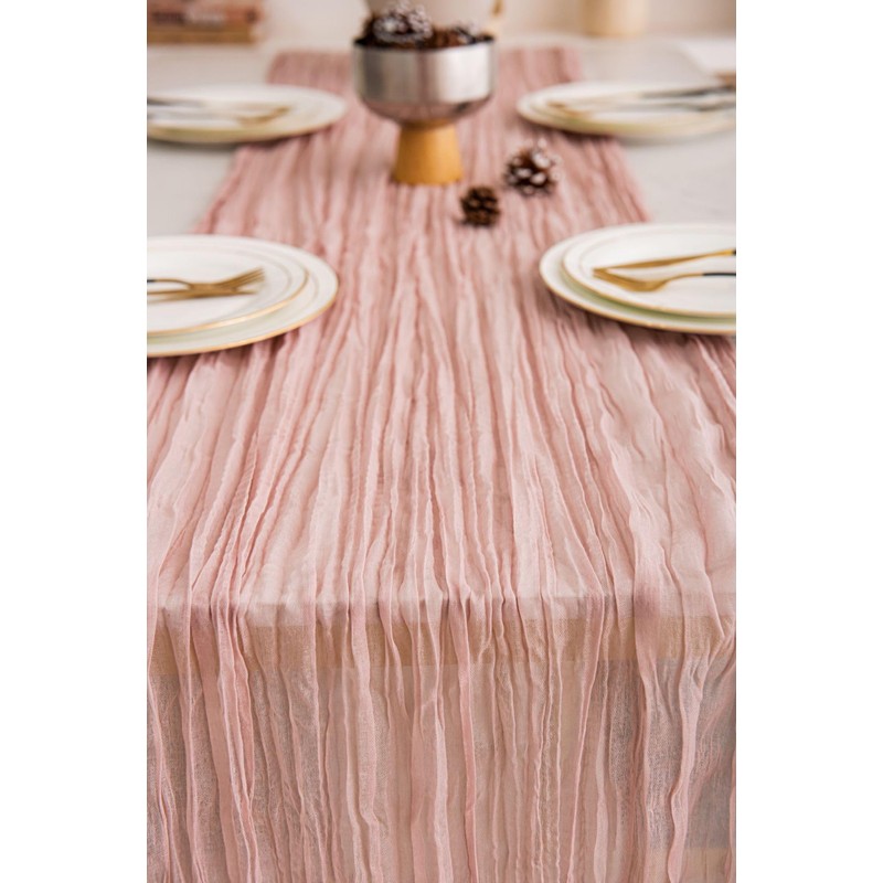 - Material: This cheesecloth table runner is made of polyester, soft to the touch and the cheesecloth fabric make the table runner sheer enough to swaying in the wind. It is completely wrinkle free and not easy to fade, not shrink thus reusable.