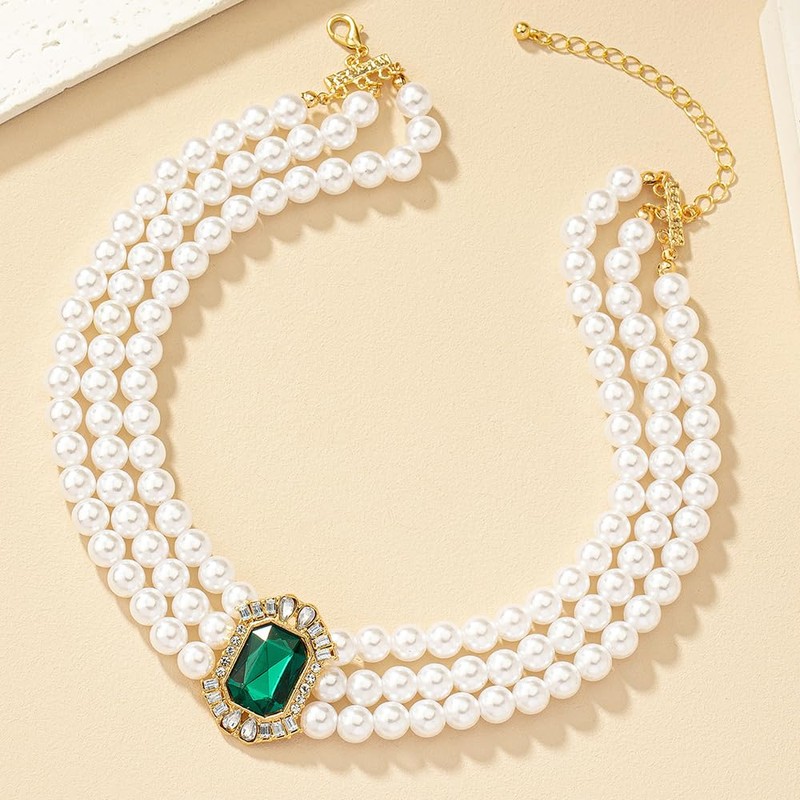 fxmimior - Collar bohemio de revestimiento múltiple para mujer de los años 20, diamantes de imitación verdes, perlas gruesas y delicadas, collares en capas, abalorio hechas a mano, con colgante