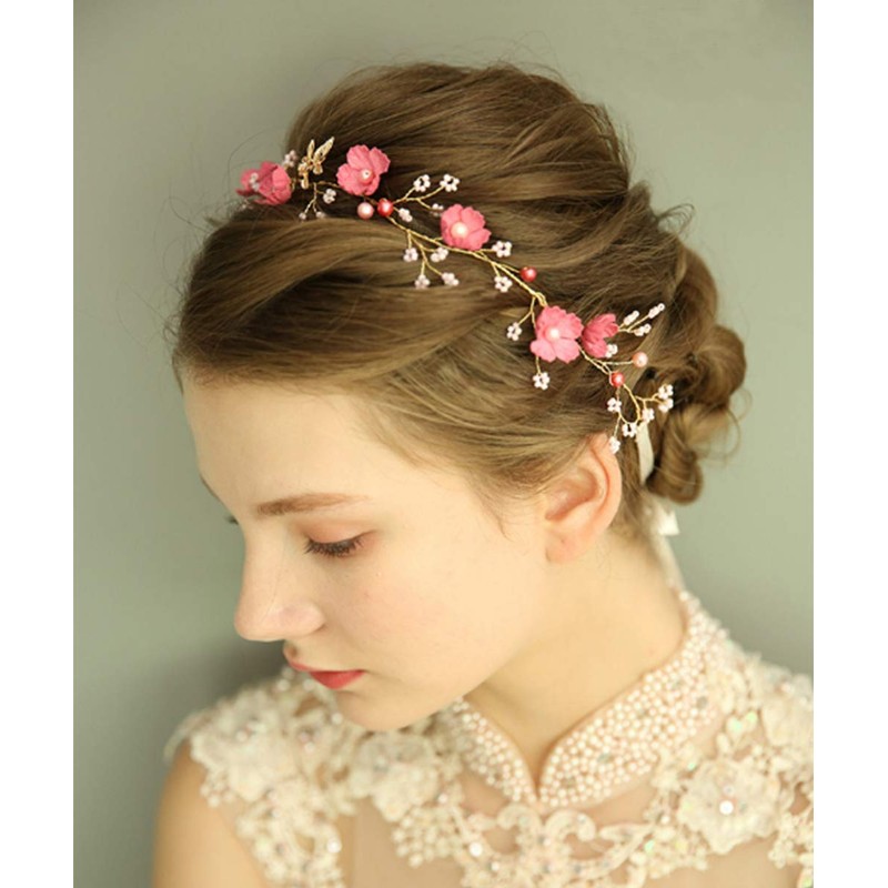 FXmimior - Diadema para novia, diseño floral y elegante, diseño clásico, con flores y perlas, accesorio para el pelo de boda (dorado)