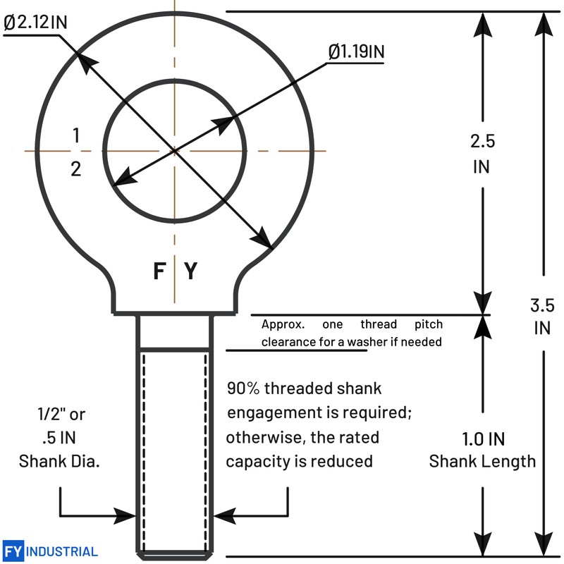FY 2 Pcs Lifting Shoulder Eye Bolts 1/2"