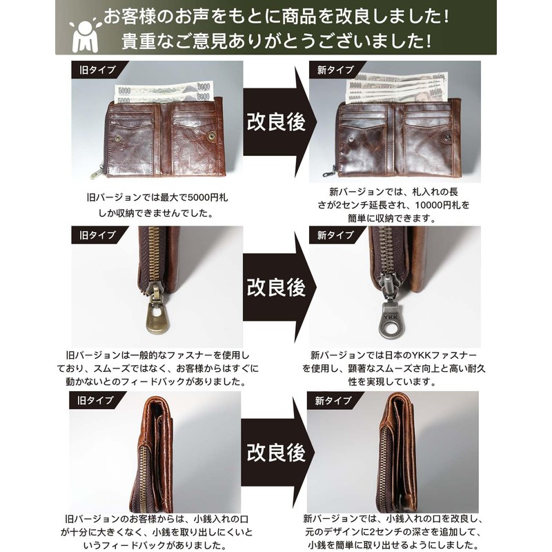 fy FOXYORK 3rd Generation Men's Bi-fold Wallet, Genuine Leather, YKK Cowhide ...