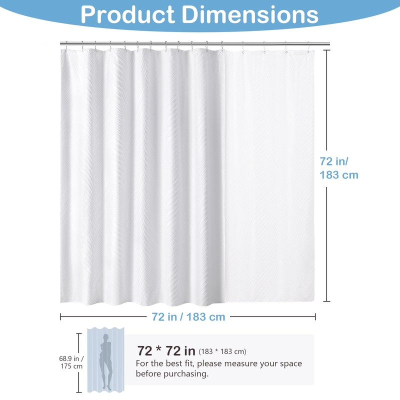 - PREMIUM & SOFT FABRIC: Crafted from polyester, this shower curtain features a soft yet durable fabric. The tufted texture adds a plush, luxurious feel. Measuring 72×72 inches, it fits most standard tubs and bathrooms, offering reliable privacy. Easy to maintain, it’s machine washable in cold water.