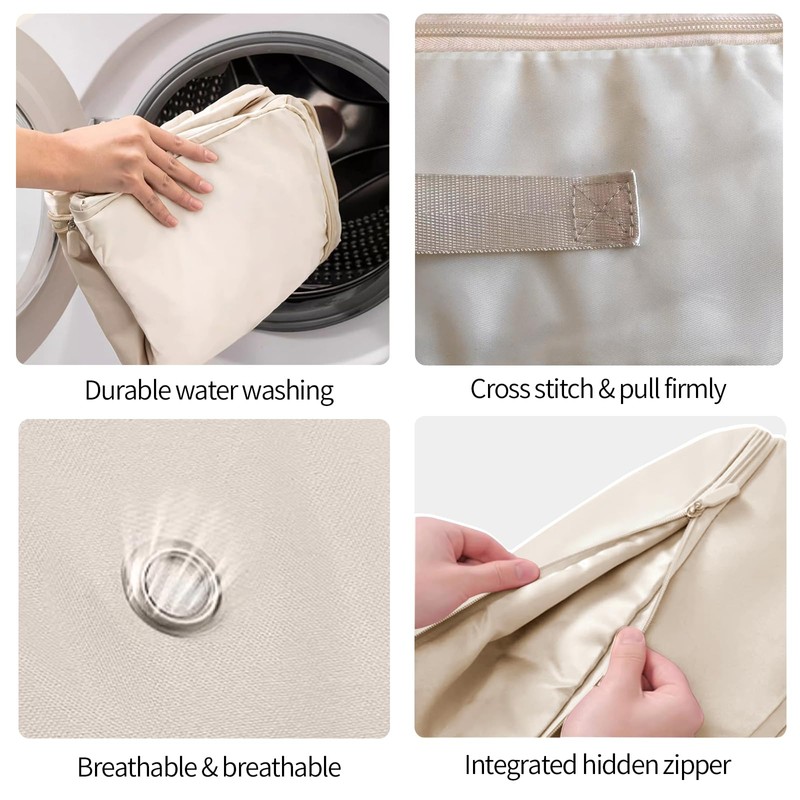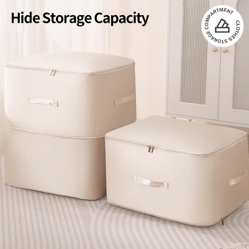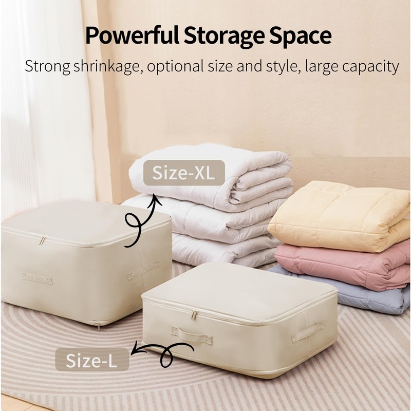 Fycyko Pack of 2 Ultra Space-Saving Self-Compressing Organiser, Underbed Storage Box, Storage Bag for Quilts and Clothes, Beige, XL