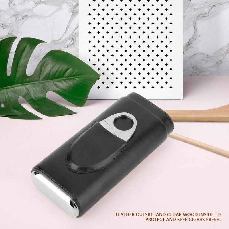 Fydun Leather Cigar Case Cigar Humidor Cedar Wood Lined Cigar Carry Container with Cutter (for 3 Cigars) (Black)