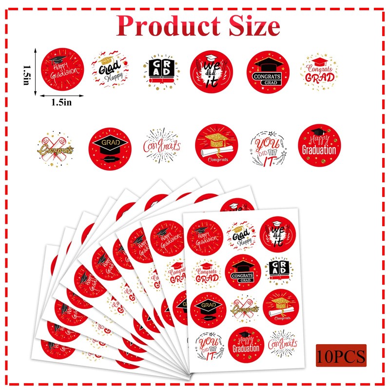 Fyeoxle 10Pack 2025 Graduation Stickers Class of 2025 Round Label Stickers Congrats Grad You Did It Adhesive Stickers Diploma Sealing Decal for Candy Bag Gifts Wrapping Grad Party Supplies (Red)