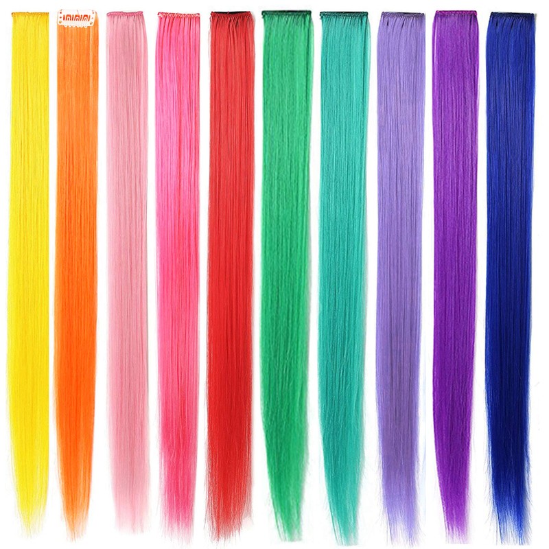 FYHTSD Rainbow Hair Extensions Coloured Human Hair Extensions Clip In/On for Girls Hair Accessories Wig Pieces for Women Pack of 10