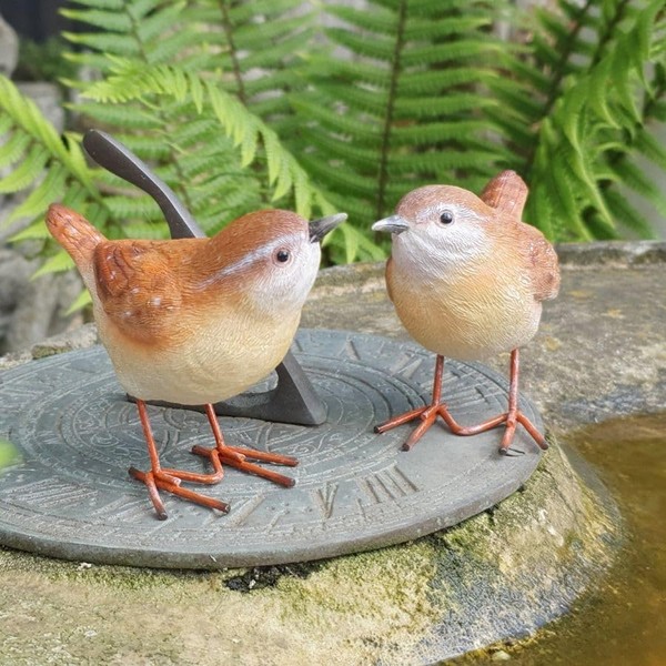 Fyne-Finds Set of 2 Resin Wren Figurines Colourful Wildlife Birds Home Garden Decorative Ornaments Gift