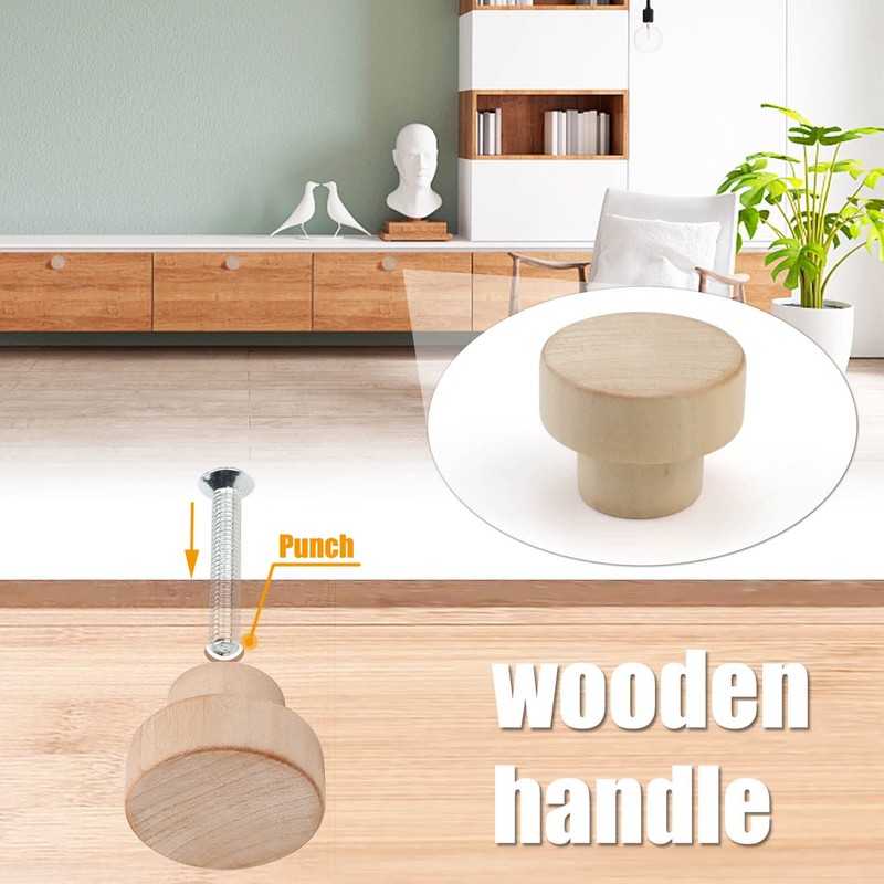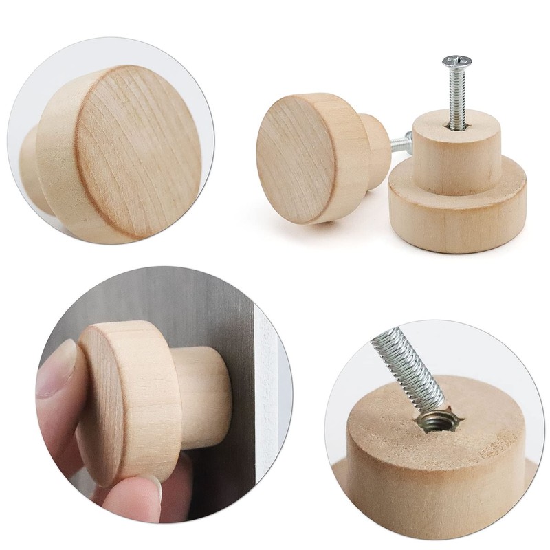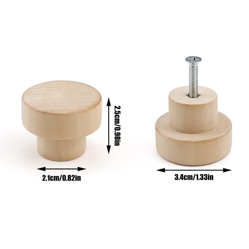 - 【Package Includes】: Drawer knobs set has 12 wooden handles and is equipped with 12 screws, complete accessories. Each cabinet knobs is unfinished and ready for painting, staining, and coloring whatever you want, used for cabinet, furniture, dresser, drawers, wardrobe, and etc.
