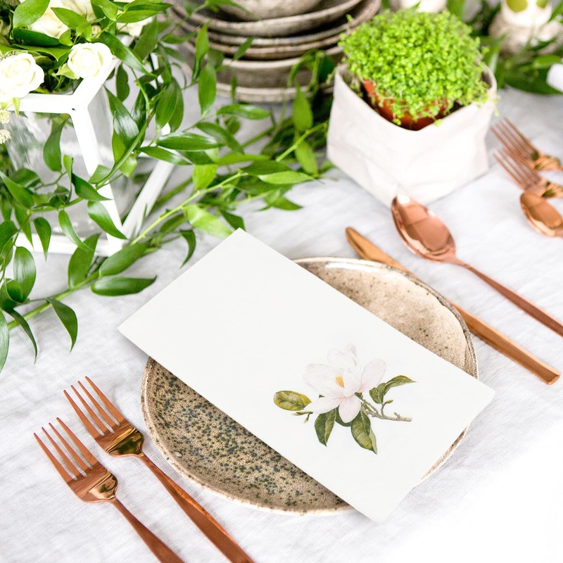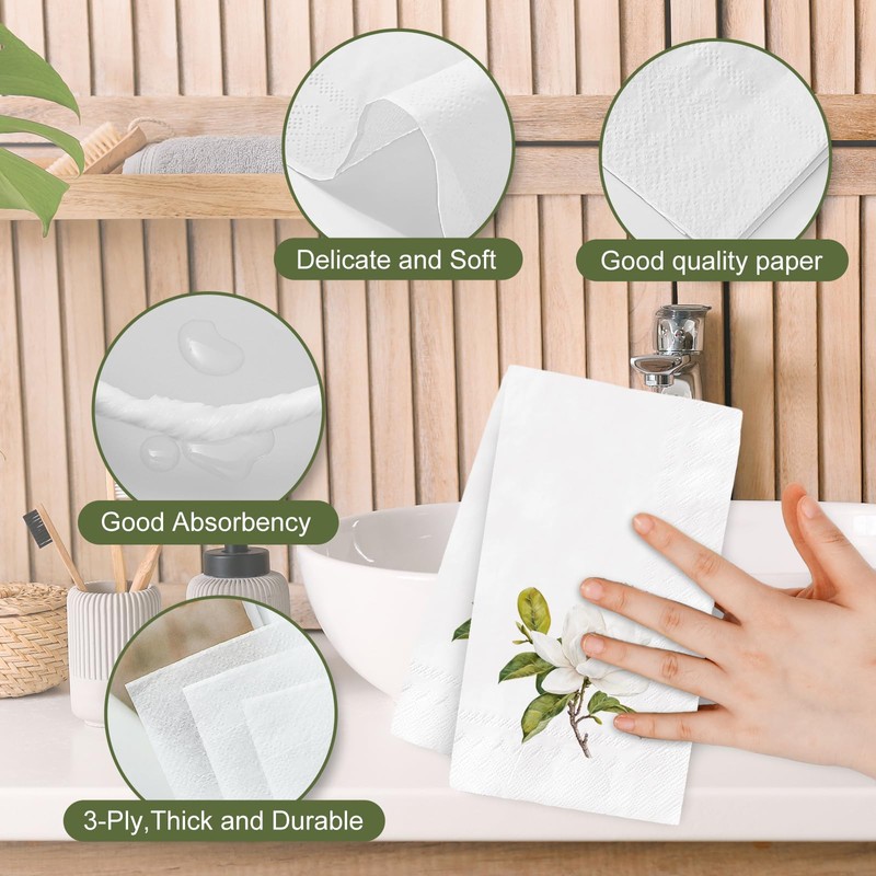 - DELICATE DEGIGN: Patterned with watercolor magnolia floral, our guest napkins are simple and elegant, great table decor for both holiday and daily needs