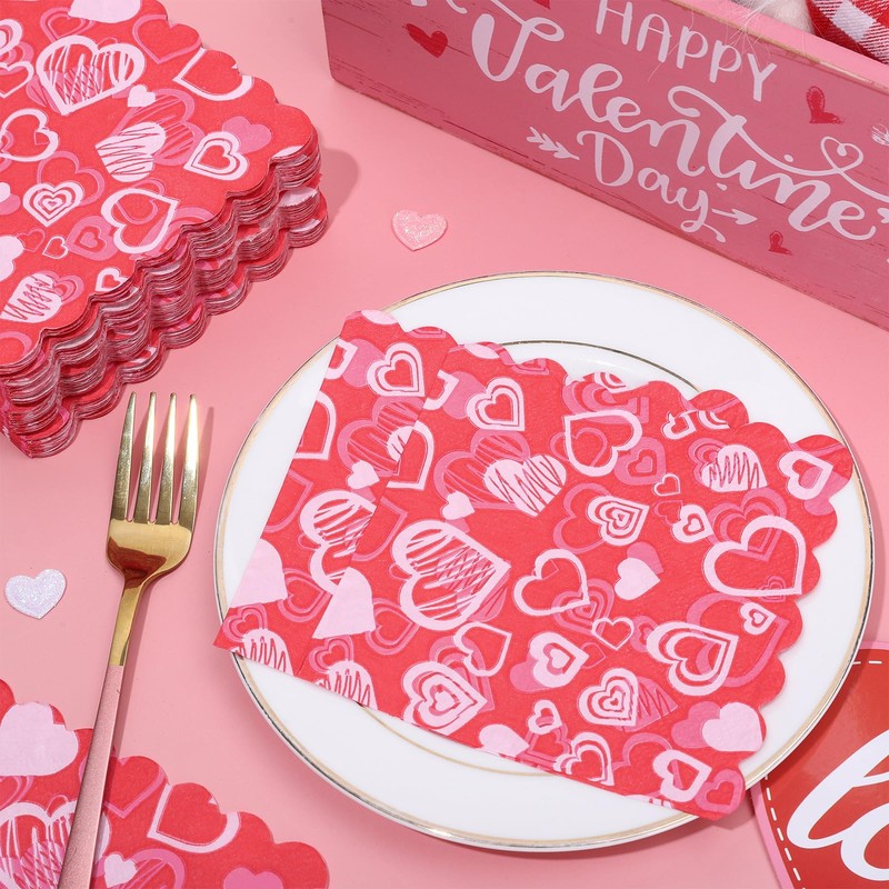 - VALENTINE’S DAY THEME: The paper napkins feature pink heart patterns and come with scalloped edges, perfect for party table decor to create a sweet and romantic atmosphere