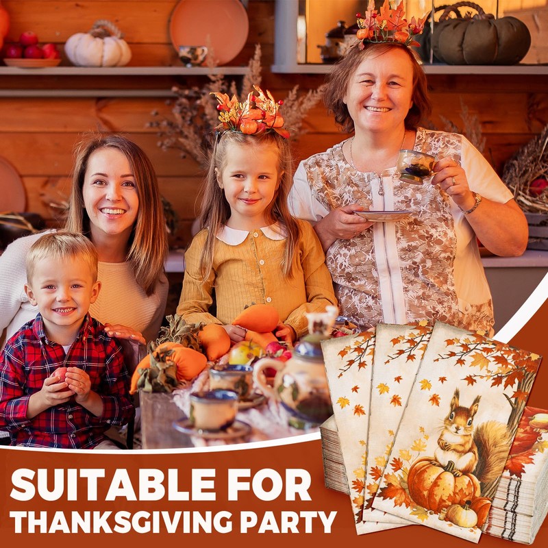 FYSUIMU 50 Pcs Fall Thanksgiving Guest Napkins Pumpkin Squirrel Maple Leaf Tree Disposable Napkins Autumn Dinner Hand Paper Napkin for Bathroom Harvest Holiday Party Table Supplies