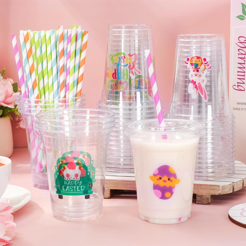 - YOU WILL GET: 60 pack Easter theme plastic cups, 60 pcs lids and 60 pcs straws, a complete set for you to use