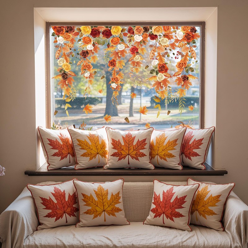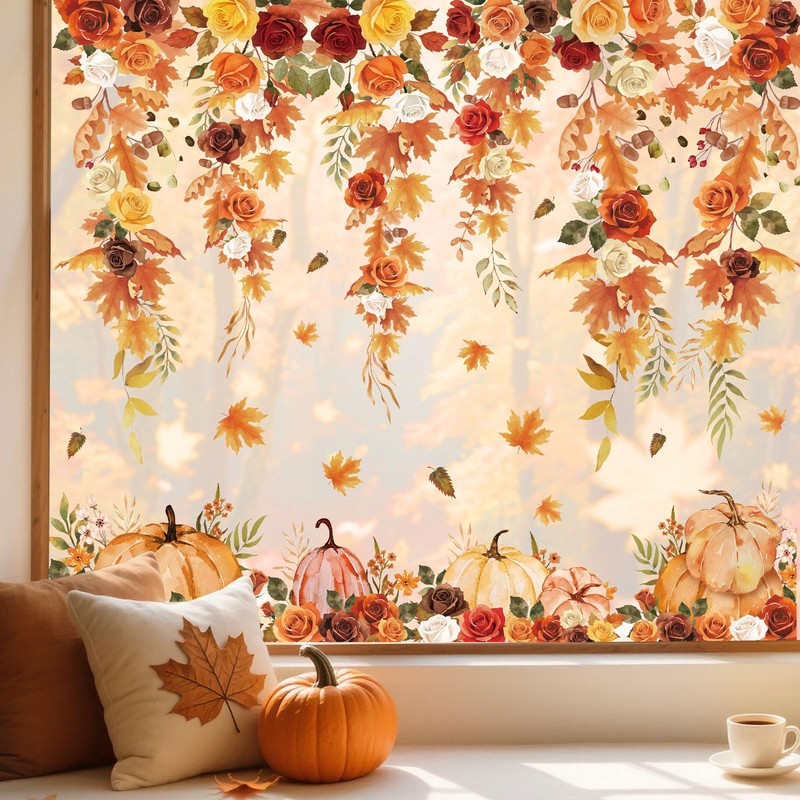 - FALL DESIGN: Features fall hanging vine, flower, maple leaves and pumpkin motifs, retro and fancy, adding a rustic and festive touch to your window display decoration