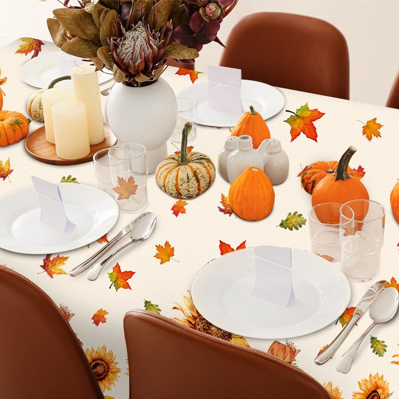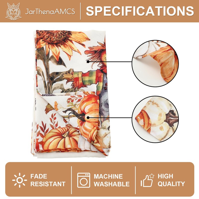 - PRETTY DESIGN: Our tablecloth adopts fall theme, patterned with scarecrow, pumpkin, sunflower and leaves against watercolor style, festive and exquisite, full of aesthetics, ideal for table decorations