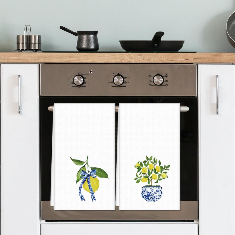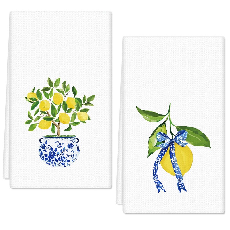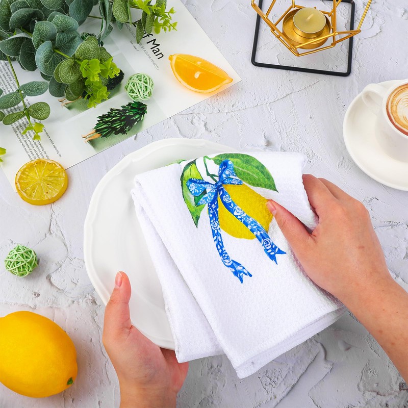- FRESH & ELEGANT: Our dish towel is designed with lemons and chinoiserie pot and bow, delicate and rustic, which will enhance holiday atmosphere for your home and party