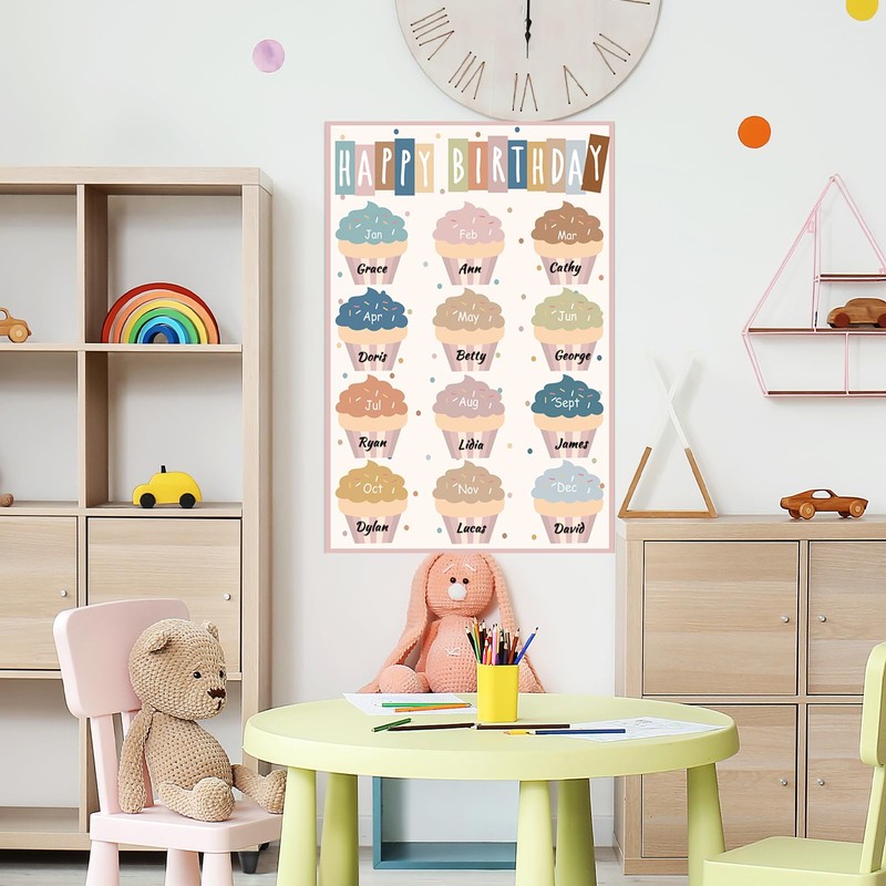 - IDEAL CLASSROOM DECOR: Designed for bulletin boards, chalkboards, or walls (11" x 16.5"), this calendar poster helps teachers and parents organize birthdays while adding a playful touch to any space