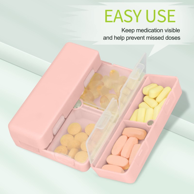 - ⏰Classic Small Pill Organizer:[Magnetic Design]The magnetic design is convenient to open and close, and the double-layer closed design prevents the pills from falling out, providing double-layer protection for the pills.The push button stays closed once locked and securely snap shut keeping pills safe.The outer container and each compartment have a lid to resist popping open even when dropped.