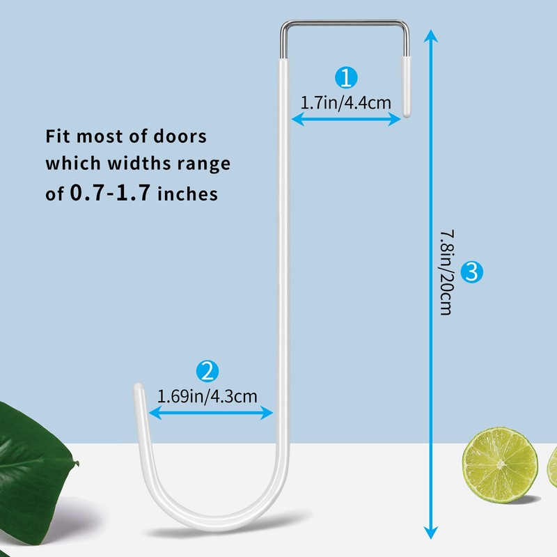 - Upgraded Size: This over the door hanger hooks length 7.8 inch, groove width 1.7 inch, fit most of doors which widths range of 0.7-1.7 inches, which perfectly fit more doors and help you reach the over door. Please measure your door before purchasing