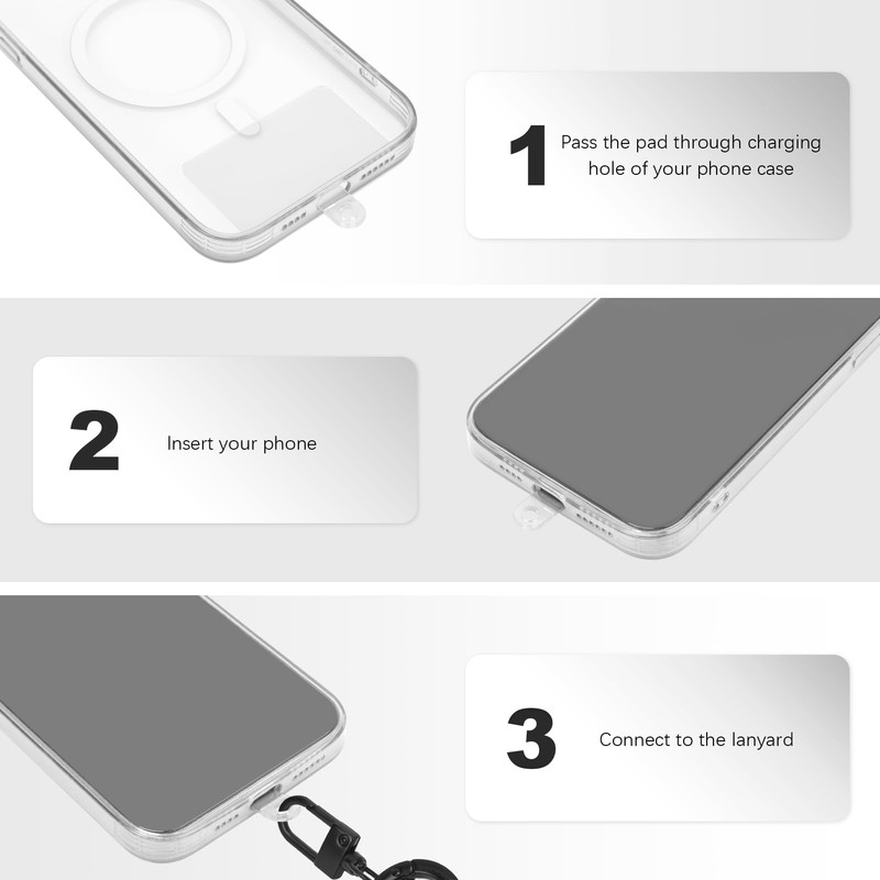 - 【Easy Installation】No tools are required. You just need to insert the pad through the charging hole of the fully covered phone case, then plug in your phone and connect to the lanyard. Please note that the half cover phone case is not supported.
