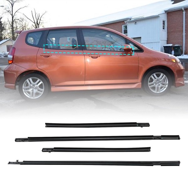 FZJDSD 4PCS Car Outer Door Glass Window Moulding Trim Weatherstrip Seal Belt Compatible with Honda Fit Hatchback 4-Door 2007 2008 Window Weather Stripping