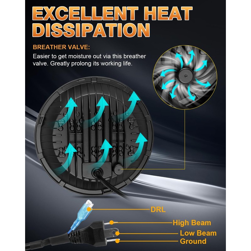 - Superior Brightness: The 7 inch LED headlights are powered by high - performance LED chips, The high beam projects a far - reaching, intense beam that allows you to clearly see up ahead, even in the darkest of nights. The low beam, on the other hand, provides a wide and even spread of light, ensuring maximum visibility without blinding oncoming traffic