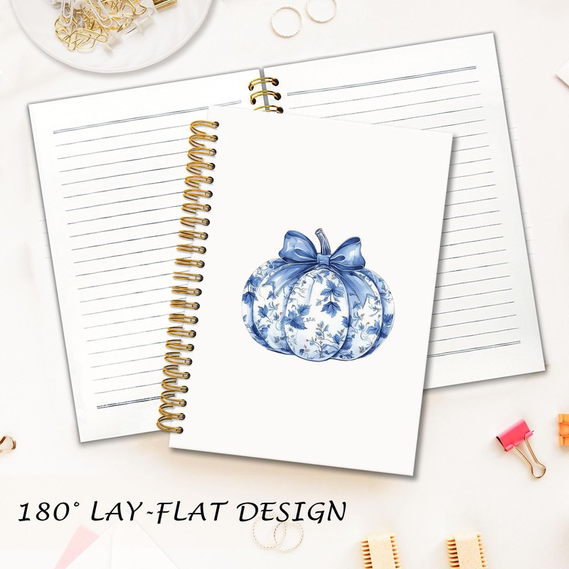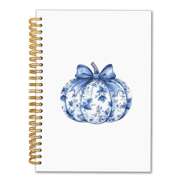 fZSZSD Chinoiserie Fall Pumpkin Spiral Notebook 5.5x8.3, Blue and White Chinoiserie Coquette Bow Pumpkin Journal, Grand Millenial Autumn Journal for Writing, Preppy Fall Notebook for Note Taking