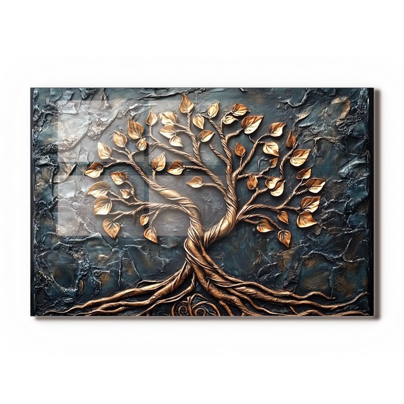 fzxwyishu Tempered Glass Kitchen Backsplash, Stove Back Top Cover, Splashback Tile,3D Tree of Life with withered leaves Kitchen Sink Cover Splash Guard, Home Kitchen Decor (30"x16"(76.2x40.64cm))