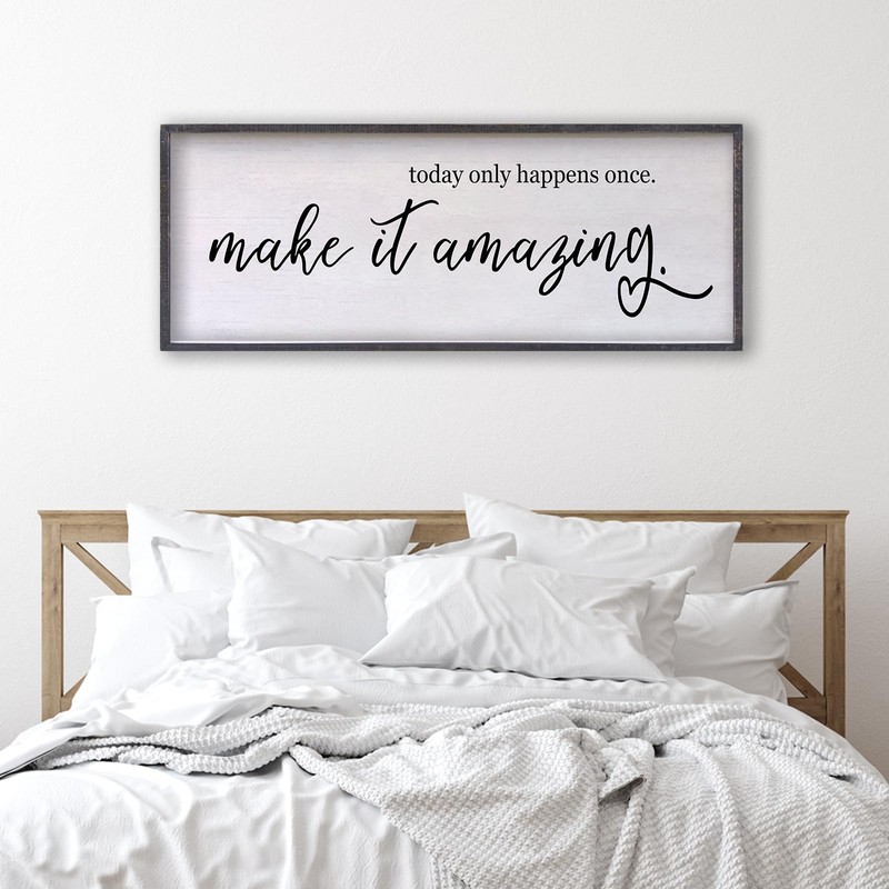 FZZHYQCHY Today Only Happens Once Make It Amazing Motivational Wall Art Decor 24×10 Inch Inspirational Wood Framed Office Wall Hanging Sign (Black)