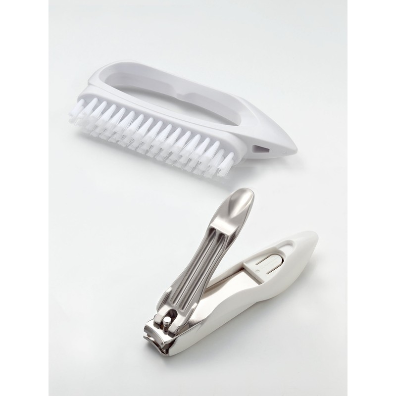 グリーンベル 匠の技 キャッチャーツメキリ&ツメブラシセット G-1003 爪切り ホワイト 1セット