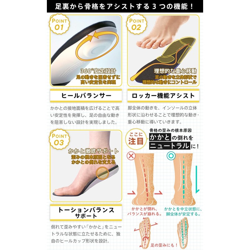 - ✅【足のトラブル・お悩みをオールサポート】足の骨格をしっかり支えて、トラブルの原因となる骨格の歪みを補正。しっかり足ケアをしたいなら「骨格インソール」です。