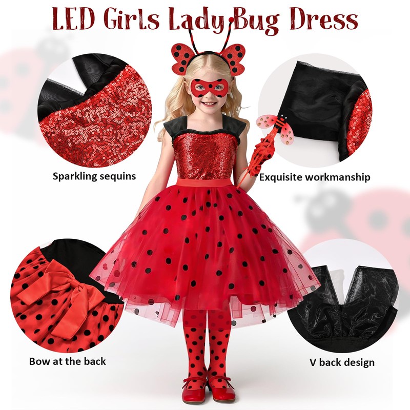 - Unique Design: Inspired by the lady bug, this costume features a classic red and black polka dot pattern with a sparkling red sequined bodice for a touch of glamour. Black trim at the bust and a red bow at the back complete the cute look. The layered tulle skirt is lightweight and breathable and the wider straps are designed to be more comfortable on girls' shoulders, making it ideal for a variety of occasions and ensuring your little girl always looks vibrant and adorable