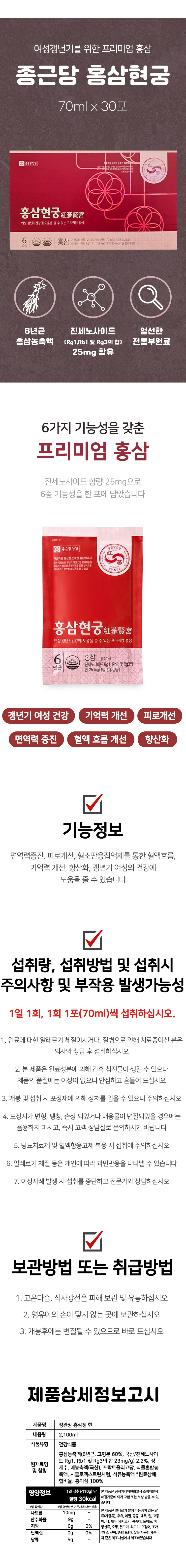 G Chong Kun Dang 6-year-old red ginseng-red ginseng Hyungung 70mlx10 Po X3 Po / G종근당 6년근 홍삼-홍삼현궁 70mlX10포X3포